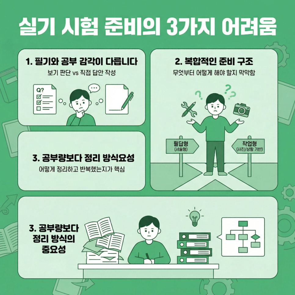 필기와 다른 방식으로 준비해야 하는 시험이기 때문인 경우가 많습니다.