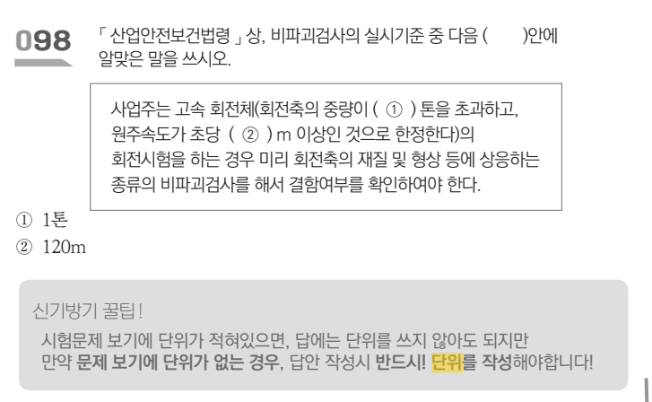 산업안전기사·건설안전기사 실기 시험 대비: 단위 작성법