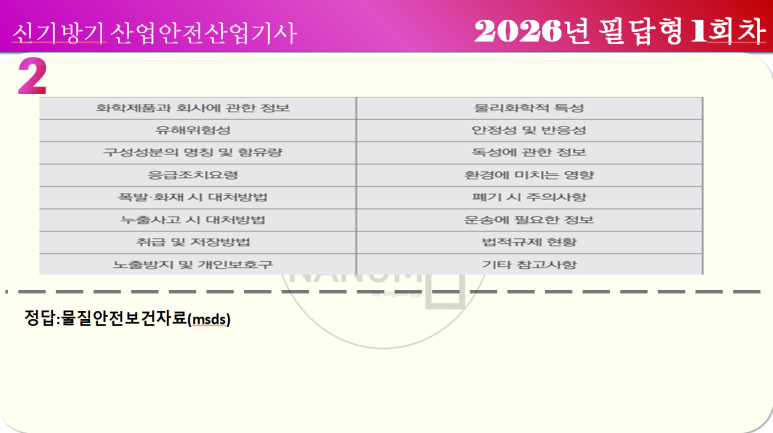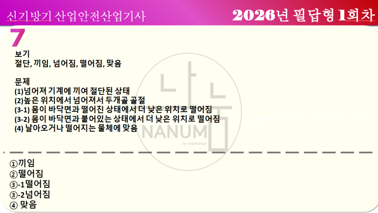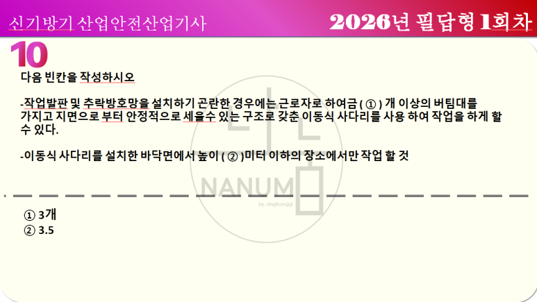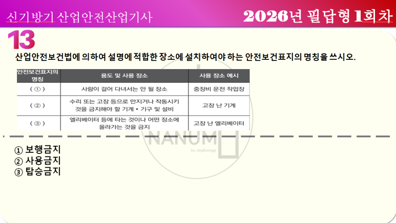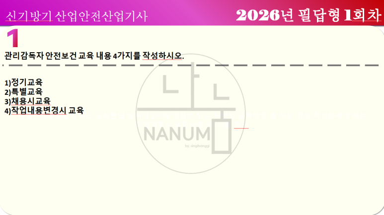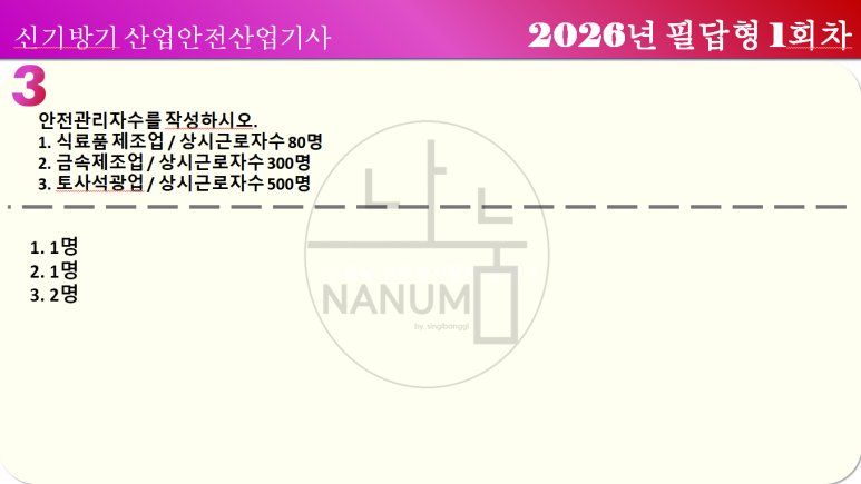 산업안전산업기사 산안산기 실기 2026년 필답형 1회차 복원
