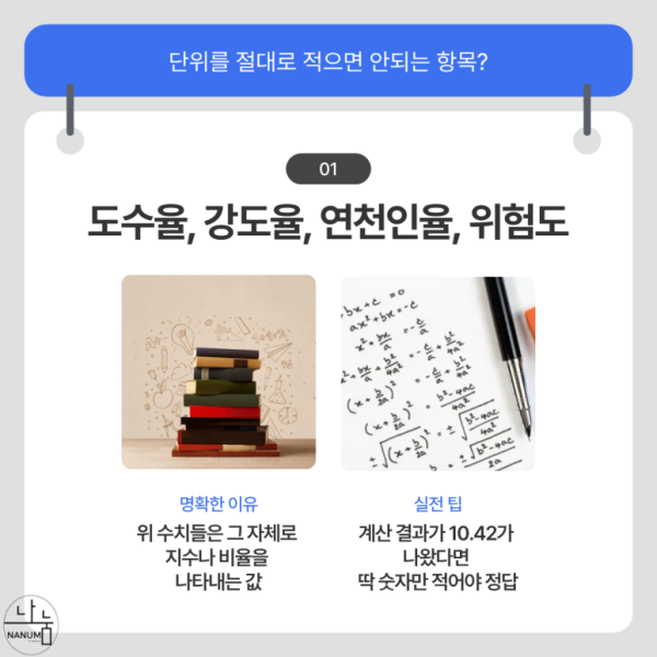 1. 단위를 절대로 적으면 안되는 항목?